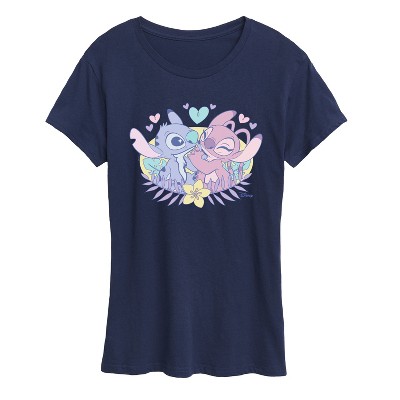 Women's Lilo & Stitch Pastel Stitch Palm Trees Short Sleeve Graphic T-Shirt - Navy - X-Large