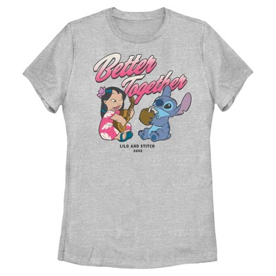 Lilo & Stitch - Stitch Letterman - Women's Short Sleeve Graphic T-Shirt - Celebrate the ohana with Lilo & Stitch graphic apparel, blending new visuals with classic heartwarming moments featuring Lilo, Stitch, and the bonds of family.
