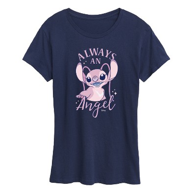 Women's Lilo & Stitch Stitch Letterman Short Sleeve Graphic T-Shirt - Navy - X-Large