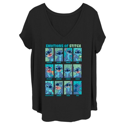 • Enjoy comfort and fashion at the same time with this unique juniors' graphic V-neck plus size tee design from Lilo & Stitch.