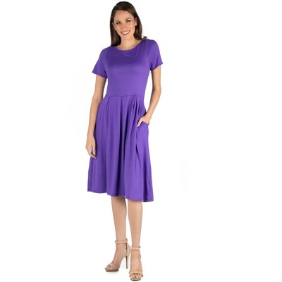 - Button-front shirt collar, short sleeves, side split hem, loose midi fit for a casual stylish look.