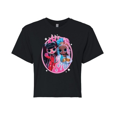 LOL OMG! Fashion Dolls - Spicy Babe - Hearts & Flames - Juniors Cropped Cotton Blend T-Shirt - Dive into the world of glitter, glam, and surprises with our exclusive collection of apparel inspired by the beloved toy phenomenon, LOL Surprise! Dolls. Crafted with quality materials for comfort and durability, our Graphic Garments are perfect for expressing your unique style and spreading joy wherever you go. Whether you're uncovering the latest fashion trends or embracing the magic of surprise, our LOL Surprise! Dolls Graphic Garments are sure to add a touch of sparkle to your wardrobe. Get ready to unleash your inner diva and make a statement with our LOL Surprise!-inspired fashion today!