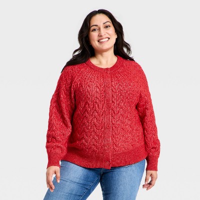 Women's Long Sleeve Knit Johnny Collar Sweater - Ava & Viv™ Coral Red - 2 of 3Women's Long Sleeve Knit Johnny Collar Sweater - Ava & Viv™ Coral Red - 3 of 3