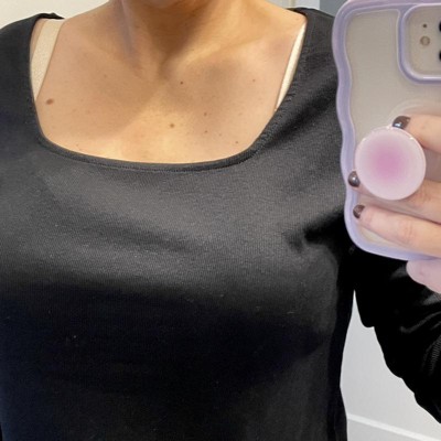 Update your collection of tops with this Long-Sleeve Slim-Fit T-Shirt from A New Day™. This long-sleeve T-shirt in a solid color features a breezy square neck, a ribbed construction and a slim silhouette for a fitted look. The casual tee is made from soft, stretchy cotton-blend material for a comfortable fit, and is ideal for layering or wearing on its own. Wear with your choice of bottoms to create a range of versatile styles.