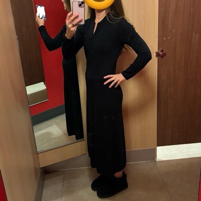 [This review was collected as part of a promotion.] I was surprised by how much I liked this maxi dress by Future Collective. It is described as a sweater dress, however the material is a very fine knit. It’s not what I would normally think of as a sweater dress with the thicker knit. The material is also a smidge see through when you hold it up to the light. I didn’t see any issues while wearing but something to keep in mind. I love a dress with long sleeves and the zipper is nice so you can adjust the neckline to your preference. I am wearing a size medium, which is my normal size in tops and felt it fit true to size. Overall very comfortable and looks great! I received an incentive to write this review.