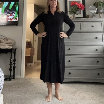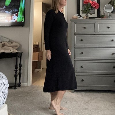 [This review was collected as part of a promotion.] I wanted to love this dress so much. It is definitely hard to find a long black sleeve dress that you can wear in the winter, colder months. However, once I put it on, and I took a few pictures I don’t think it says flattering as I thought. it’s very simple, nothing great nothing that stands out. Definitely a basic long sleeve black knit sweater type dress. I have ordered a large, which is my typical size. Definitely fits true to size. I received an incentive to write this review.