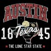• Strut your stuff with this stylish new juniors' scoop neck t-shirt that is perfect for every occasion! Featuring "Austin Texas 1845 The Lone Star State" printed in red and white along with a silhouette of Texas across the front.