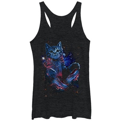 Women's Lost Gods Cats and Flowers Racerback Tank Top - Black Heather - X Large