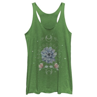 Take your everyday style to the next level with this lovely new Women's Racerback Tank Top from Lost Gods! This easy-breezy purple heather tank features a daisy flower adorned across the center along with floral branches, a white crescent moon above, and stars and sparkles in the background. Grab this new graphic tank today and make everything from workouts to running errands, or even just lounging around the house a little extra chic!