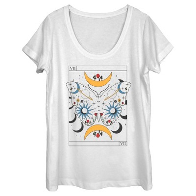 • Strut your stuff with this stylish new women's scoop neck t-shirt that is perfect for every occasion! Featuring a tarot-card-inspired design of a mushroom with a frog and a butterfly across the front.