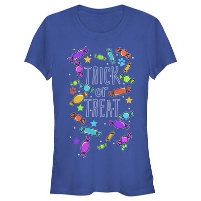 It's our favorite time of year! Celebrate Halloween with this adorable Women's Racerback Tank Top featuring the words "Trick or Treat" in bold across the front surrounded by colorful candies, stars, and paw prints.