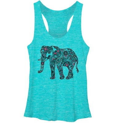 Women's Lost Gods Henna Print Elephant Racerback Tank Top
