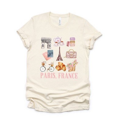 • Strut your stuff with this stylish new everyday women's tee that is perfect for every occasion! Featuring the France flag with the word "Paris" in red and blue across the front.