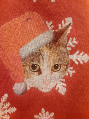 Got this for my granddaughter to wear on Xmas day. We love cats so she loves the shirt. Comfy and well made too. Colors are very bright and the cats are so cute.