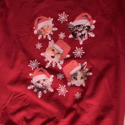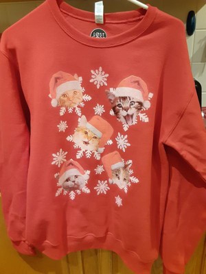 Women's Lost Gods Ugly Christmas Cat Snowflakes Sweatshirt - Red - Small