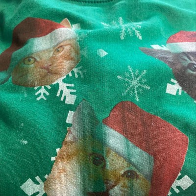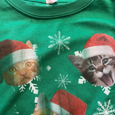 Twas the night before Christmas, and all through the house, kittens were stirring…searching for a mouse on the Lost Gods Cat Snowflakes Kelly Green Oversized Sweatshirt. This hilarious green boyfriend-cut sweatshirt features five cats wearing Santa hats and riding snowflakes.