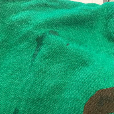 I received this sweatshirt today and can’t believe the awful quality. The color of the sweatshirt is fine, but it’s huge (more like XL vs L) and the graphics are horrible. There’s a dark line down the front, where it looks like the printer was almost out of ink and blotches of ink (?) on the top of the shirt. Disappointed in the lack of quality control.