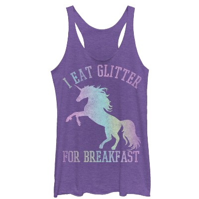 Women's Lost Gods Unicorn and Flying Cats in Space Racerback Tank Top - Purple Heather - X Large