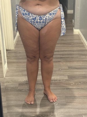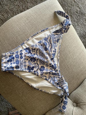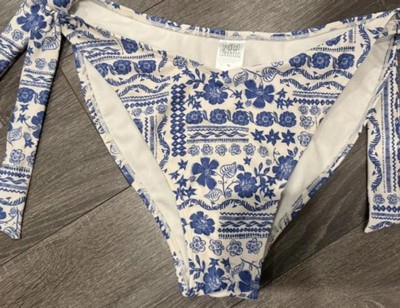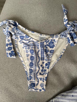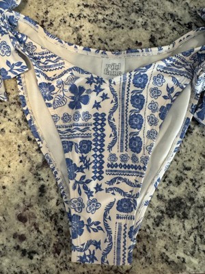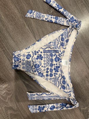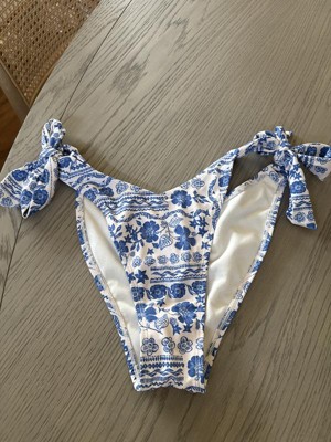 Women's Low-Rise Extra High Leg Cheeky Side-Tie Bikini Bottom - Wild Fable™ Cream/Blue Floral Print XXS