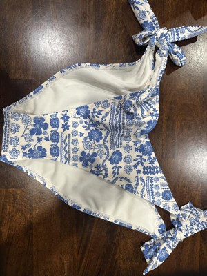 Women's Low-Rise Extra High Leg Cheeky Side-Tie Bikini Bottom - Wild Fable™ Cream/Blue Floral Print - 2 of 4Women's Low-Rise Extra High Leg Cheeky Side-Tie Bikini Bottom - Wild Fable™ Cream/Blue Floral Print - 3 of 4Women's Low-Rise Extra High Leg Cheeky Side-Tie Bikini Bottom - Wild Fable™ Cream/Blue Floral Print - 4 of 4