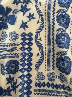 This is so cute! The material is such great quality. The pattern is SO stinking cute. The color is perfect, it’s a very trendy blue. I loved how flattering it was as well! Definitely a must in my rotation
