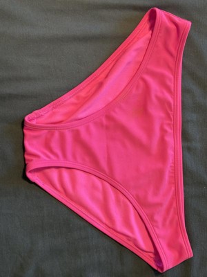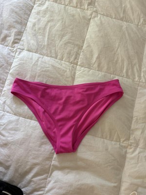 I just love these Shade & Shore™ medium women's low-rise full-coverage bikini bottoms in pink. They are. Not too tiny or tight. They fit well. The pink is bright and cherry and could be great for all skin types.