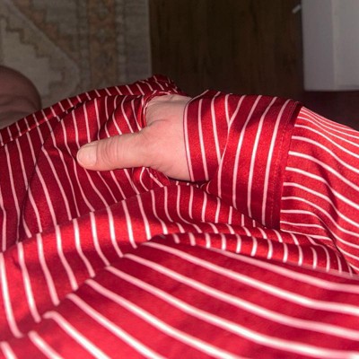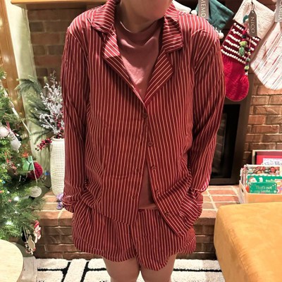 [This review was collected as part of a promotion.] I ordered this pajama set for myself. I am 5’7” 170lbs and my true size is large. I ordered my true size large and it fit true to size. This pajama set is so adorable. I love the silk material, it’s super soft and light. These are perfect for every day sleep but this print is especially great for around the holidays.