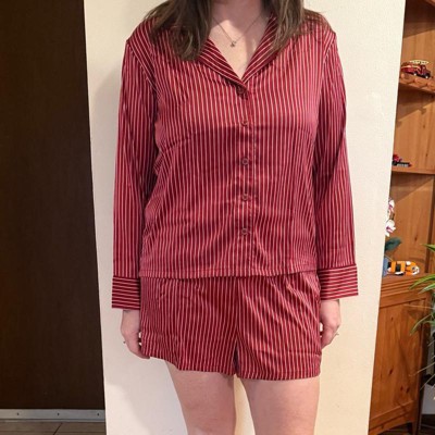 Women's Luxury Collection Satin Notch Collar Long Sleeve Shirt and Shorts Pajama Set - Auden™ - 2 of 3Women's Luxury Collection Satin Notch Collar Long Sleeve Shirt and Shorts Pajama Set - Auden™ - 3 of 3