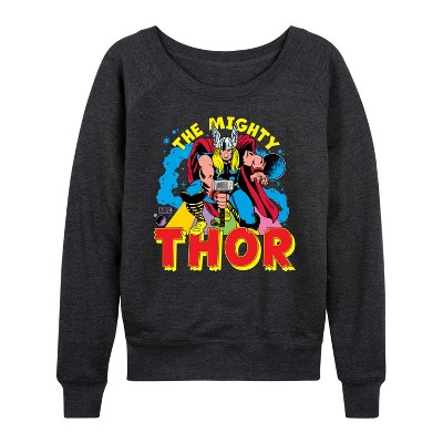 Marvel Thor - Asgard Lift Club - Women's French Terry Pullover Long Sleeve Shirt - Introducing our collection of officially licensed Marvel graphic apparel, where legendary superheroes and iconic moments from the Marvel Universe come to life on high-quality, comfortable clothing. Each design is carefully crafted with vibrant, detailed artwork featuring beloved characters like Spider-Man, Iron Man, Captain America, and the Avengers. From bold graphic tees to stylish hoodies and accessories, our apparel celebrates the thrilling world of Marvel with cutting-edge prints, premium fabrics, and a perfect fit for fans of all ages.