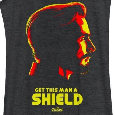 Captain America has been without a shield since the Civil War, so he's pretty excited about getting another one AND the Marvel Avengers: Infinity War Get Captain America a Shield Women's Racerback Tank Top too! A profile of Captain America shows a new, rougher, Captain America with the famed quote "Get this Man a Shield" across the front of this relaxed-fit Infinity War tank top.