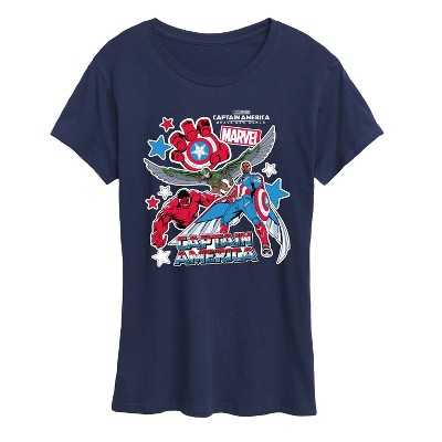 Marvel Captain America - Band Tee Style - Women's Short Sleeve Graphic T-Shirt - Introducing our collection of officially licensed Marvel graphic apparel, where legendary superheroes and iconic moments from the Marvel Universe come to life on high-quality, comfortable clothing. Each design is carefully crafted with vibrant, detailed artwork featuring beloved characters like Spider-Man, Iron Man, Captain America, and the Avengers. From bold graphic tees to stylish hoodies and accessories, our apparel celebrates the thrilling world of Marvel with cutting-edge prints, premium fabrics, and a perfect fit for fans of all ages.