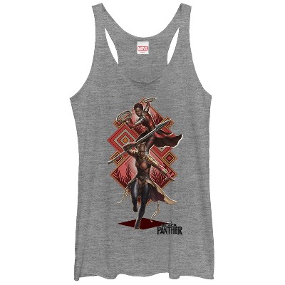 If you've always wanted to know what is like to be a villain then throw on the Marvel Black Panther 2018 Claw Crest Women's Racerback Tank Top! This epic Black Panther tank shows off the King of Wakanda 's nemesis, Killmonger, in an elaborate crest pattern alongside the Black Panther logo.