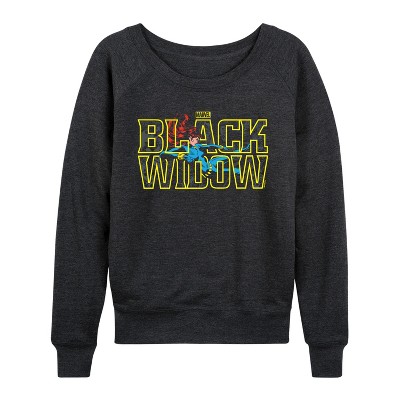 Women's Marvel Black Widow Grid Lightweight French Terry Wide Neck Long Sleeve Graphic Shirt - Heather Charcoal - X-Large