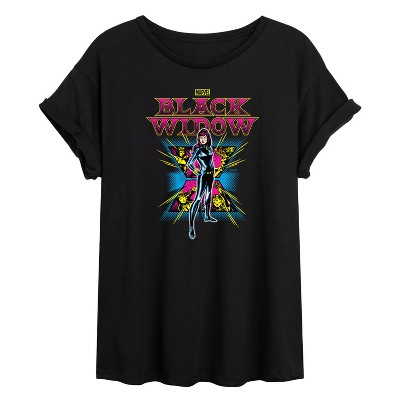 Women's Marvel Black Widow Panels Short Sleeve Graphic T-Shirt - Heather Royal Blue - Small