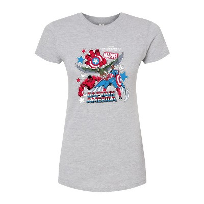 Women's - Marvel - Captain America Ink Grid Fitted Graphic T-Shirt