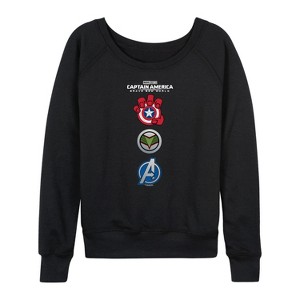 Women's - Marvel - Captain America Logo Stack Lightweight French Terry Wide Neck Long Sleeve Graphic Shirt - 2 of 4Women's - Marvel - Captain America Logo Stack Lightweight French Terry Wide Neck Long Sleeve Graphic Shirt - 3 of 4Women's - Marvel - Captain America Logo Stack Lightweight French Terry Wide Neck Long Sleeve Graphic Shirt - 4 of 4