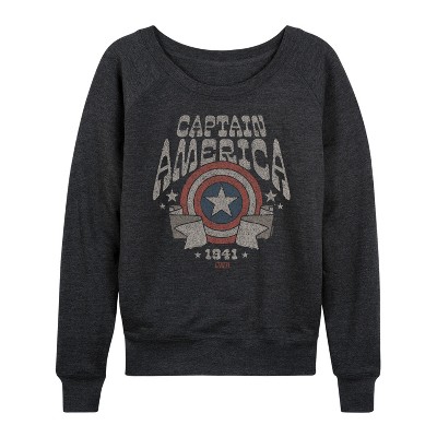 Women's Marvel Captain America My Shield Valentine Lightweight French Terry Wide Neck Long Sleeve Graphic Shirt - Heather Charcoal - X-Large