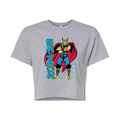 Marvel Thor - Collegiate - Juniors Cropped Graphic T-Shirt - Introducing our collection of officially licensed Marvel graphic apparel, where legendary superheroes and iconic moments from the Marvel Universe come to life on high-quality, comfortable clothing. Each design is carefully crafted with vibrant, detailed artwork featuring beloved characters like Spider-Man, Iron Man, Captain America, and the Avengers. From bold graphic tees to stylish hoodies and accessories, our apparel celebrates the thrilling world of Marvel with cutting-edge prints, premium fabrics, and a perfect fit for fans of all ages.