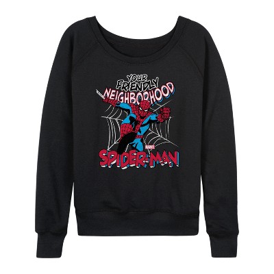 Women's - Marvel - Friendly Neighborhood Spider-Man Comic Book Cover Lightweight French Terry Wide Neck Long Sleeve Graphic Shirt