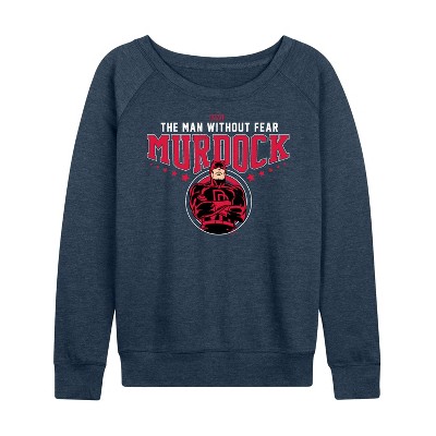 Women's Daredevil Daredevil Comic Panels Lightweight French Terry Wide Neck Long Sleeve Graphic Shirt - Heather Indigo - Medium