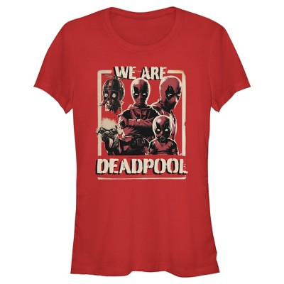 • Strut your stuff with this stylish new women's t-shirt that is perfect for every occasion! Featuring a photo of Deadpool, Kidpool, Babypool, Headpool, and Dogpool in a cool collage and the statement: "We Are Deadpool" printed in white lettering across the front.