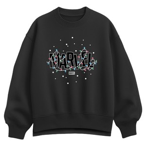 Marvel - Marvel Holiday Lights - Ladies Oversized Fleece Crew Sweatshirt - Introducing our collection of officially licensed Marvel graphic apparel, where legendary superheroes and iconic moments from the Marvel Universe come to life on high-quality, comfortable clothing. Each design is carefully crafted with vibrant, detailed artwork featuring beloved characters like Spider-Man, Iron Man, Captain America, and the Avengers. From bold graphic tees to stylish hoodies and accessories, our apparel celebrates the thrilling world of Marvel with cutting-edge prints, premium fabrics, and a perfect fit for fans of all ages.