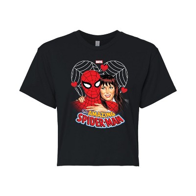 Women's - Marvel - Spider-man Mary Jane Heart Cropped Graphic T-Shirt