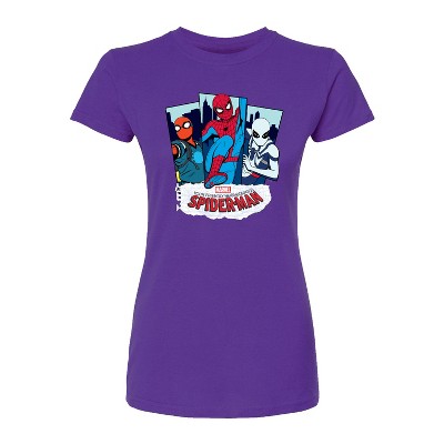Women's Marvel Miles Morales Spiderman Santa Fitted Graphic T-Shirt - Purple - Small