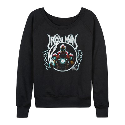 Women's Marvel Hulk Portrait Oversized Lightweight French Terry Wide Neck Long Sleeve Graphic Shirt - Black - Medium