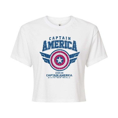 Women's - Marvel - Captain America Retro Stars And Stripes Cropped Graphic T-Shirt - 2 of 4Women's - Marvel - Captain America Retro Stars And Stripes Cropped Graphic T-Shirt - 3 of 4Women's - Marvel - Captain America Retro Stars And Stripes Cropped Graphic T-Shirt - 4 of 4