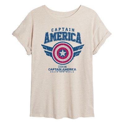 Women's Marvel Captain America Retro Stars And Stripes Oversized Graphic T-Shirt - Birch - Small
