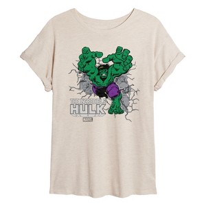 Women's - Marvel - Hulk Smash Through Wall Oversized Graphic T-Shirt - 1 of 4