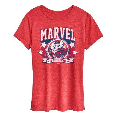 Marvel Iron Man - Stark Collegiate- -Women's Short Sleeve Graphic T-Shirt - Introducing our collection of officially licensed Marvel graphic apparel, where legendary superheroes and iconic moments from the Marvel Universe come to life on high-quality, comfortable clothing. Each design is carefully crafted with vibrant, detailed artwork featuring beloved characters like Spider-Man, Iron Man, Captain America, and the Avengers. From bold graphic tees to stylish hoodies and accessories, our apparel celebrates the thrilling world of Marvel with cutting-edge prints, premium fabrics, and a perfect fit for fans of all ages.