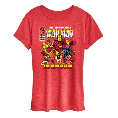 Women's Marvel Iron Man Sticker Style Short Sleeve Graphic T-Shirt - Heather Red - 2X